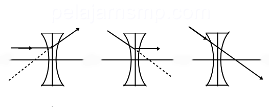 Sinar datang seakan-akan menuju titik fokus F2 dan dibiaskan sejajar sumbu utama,