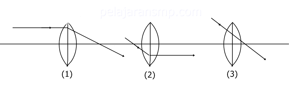 Sinar datang melalui titik pusat lensa O diteruskan lurus tanpa dibiaskan.