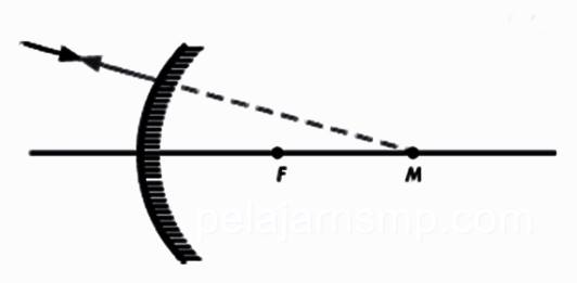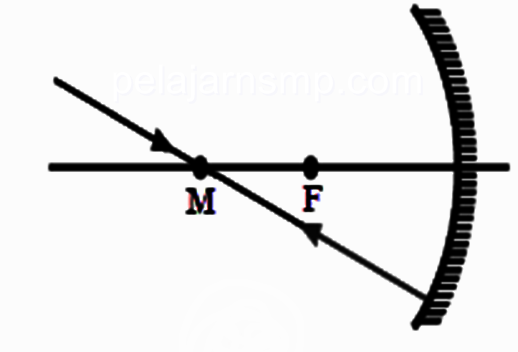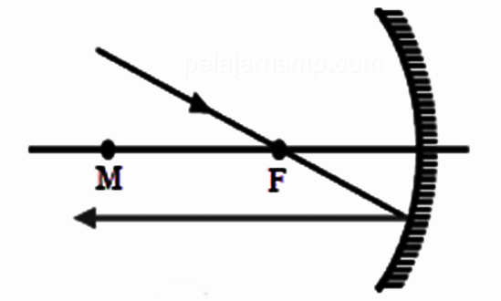 – Sinar datang menuju titik fokus F dipantulkan sejajar sumbu utama. Berikut gambarannya :