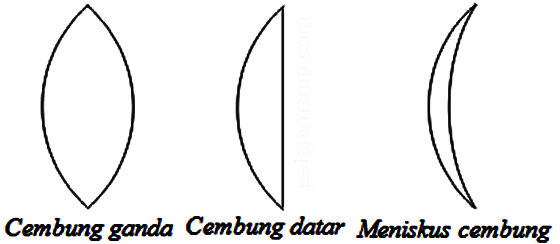– lensa cembung adalah lendsa yang bagian tengahnya lebih tebal daripada bagian tepinya. Sifat bayangan yang dibentuk oleh lensa cembung adalah maya, tegak dan diperbesar, jenis-jenis lensa cembung, diantaranya adalah :